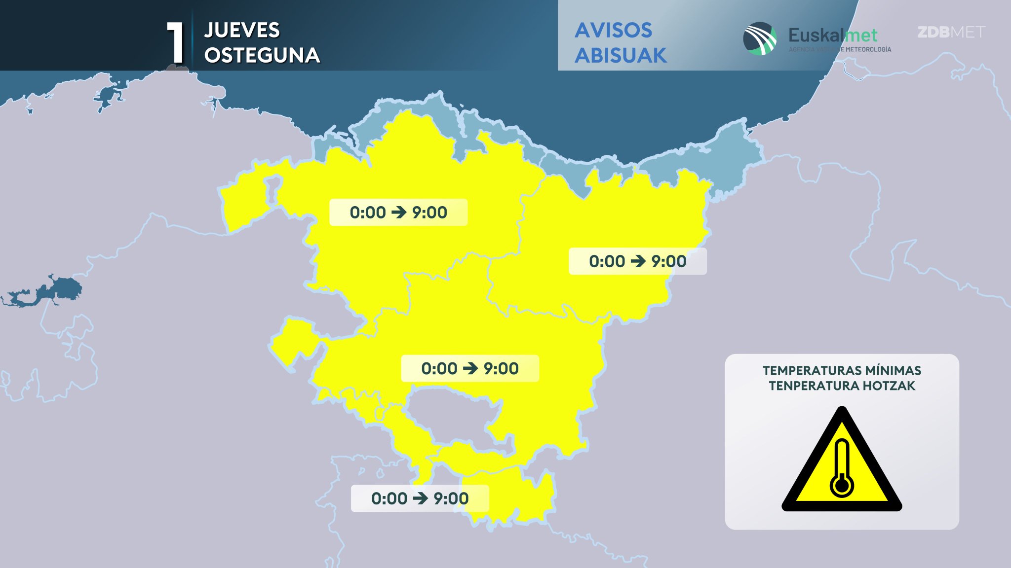 Aviso amarillo por temperaturas muy frías hasta las 9.00 horas PREVISIÓN: Zaldibar Meteo