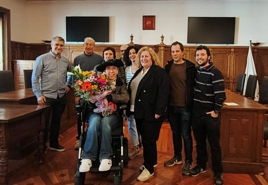 Pasadan ostiraleko ekitaldian, bertsolariek bertsoak abestu zizkioten, eta alkateak txapela jantzi eta lore sorta bat eman zion