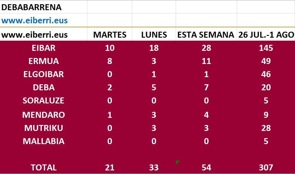 En el resto de municipios deba registró 2 casos y Mendaro 1