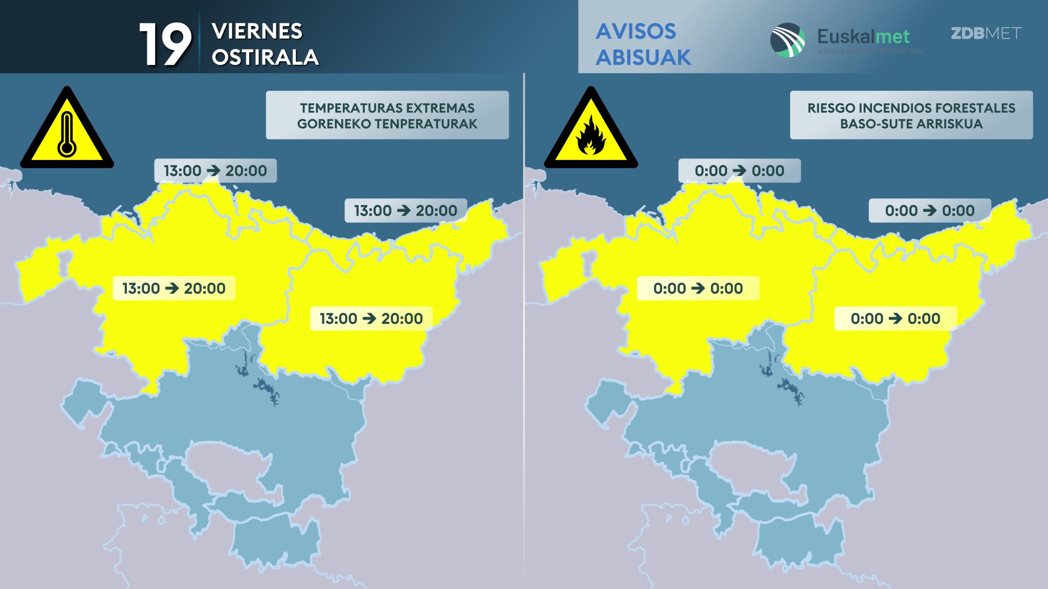 Aviso amarillo por altas temperaturas para hoy viernes PREVISIÓN. Zaldibar Meteo