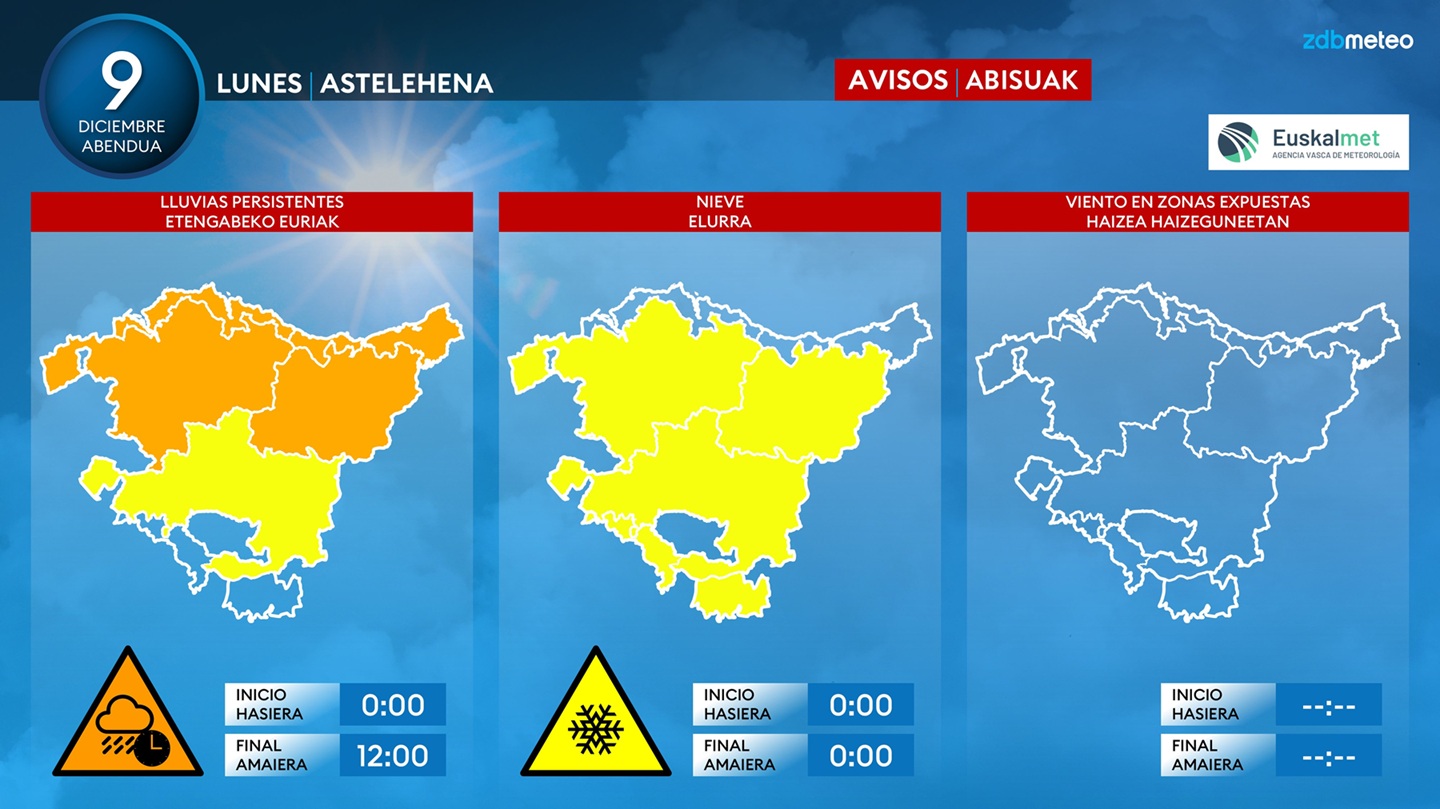 EGURALDIA | El temporal seguirá azotando la comarca, hyo lunes con bastante intensidad, a partir de mañana martes con menos lluvia, aunque dejará un ambiente muy frío con posibilidad de heladas.