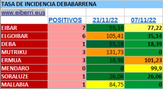 DEBABARRENA | La comarca suma 22 nuevos casos en los últimos siete días. Dos localidades suben hasta el nivel naranja, concretamente Elgoibar y Mutriku, mientras que Mallabia se sitúa en amarillo.