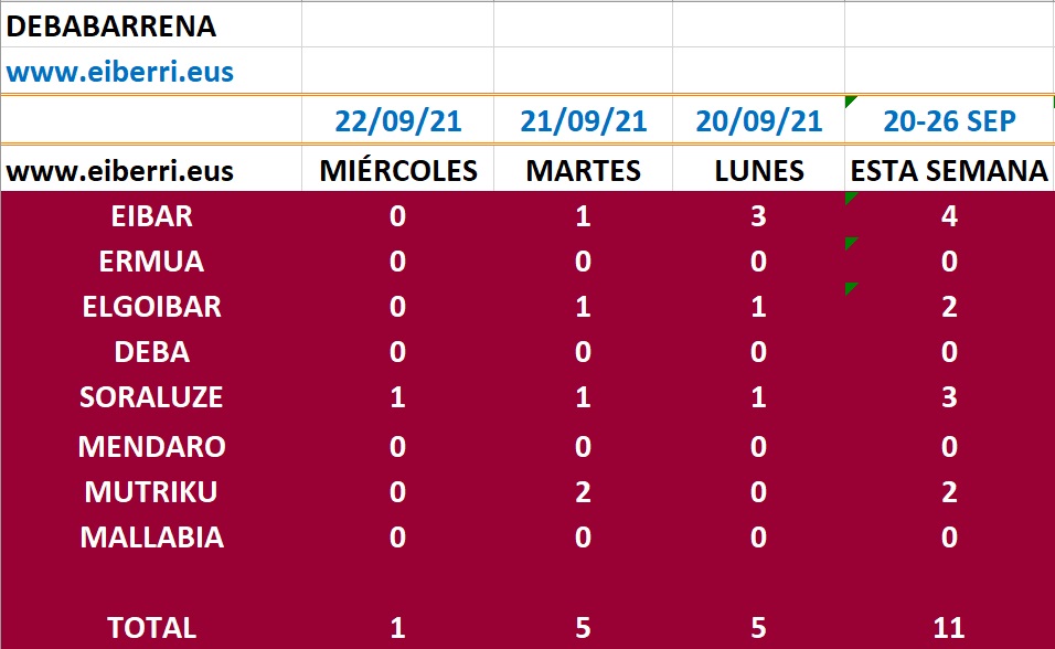 DEBABARRENA.- Los casos de coronavirus caen en Debabarrena y ayer tan solo se registró un caso en Soraluze.