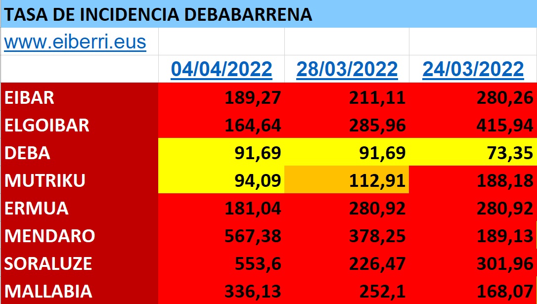 la tasa de incidencia sigue mejorando a excepción de Mendaro y Soraluze