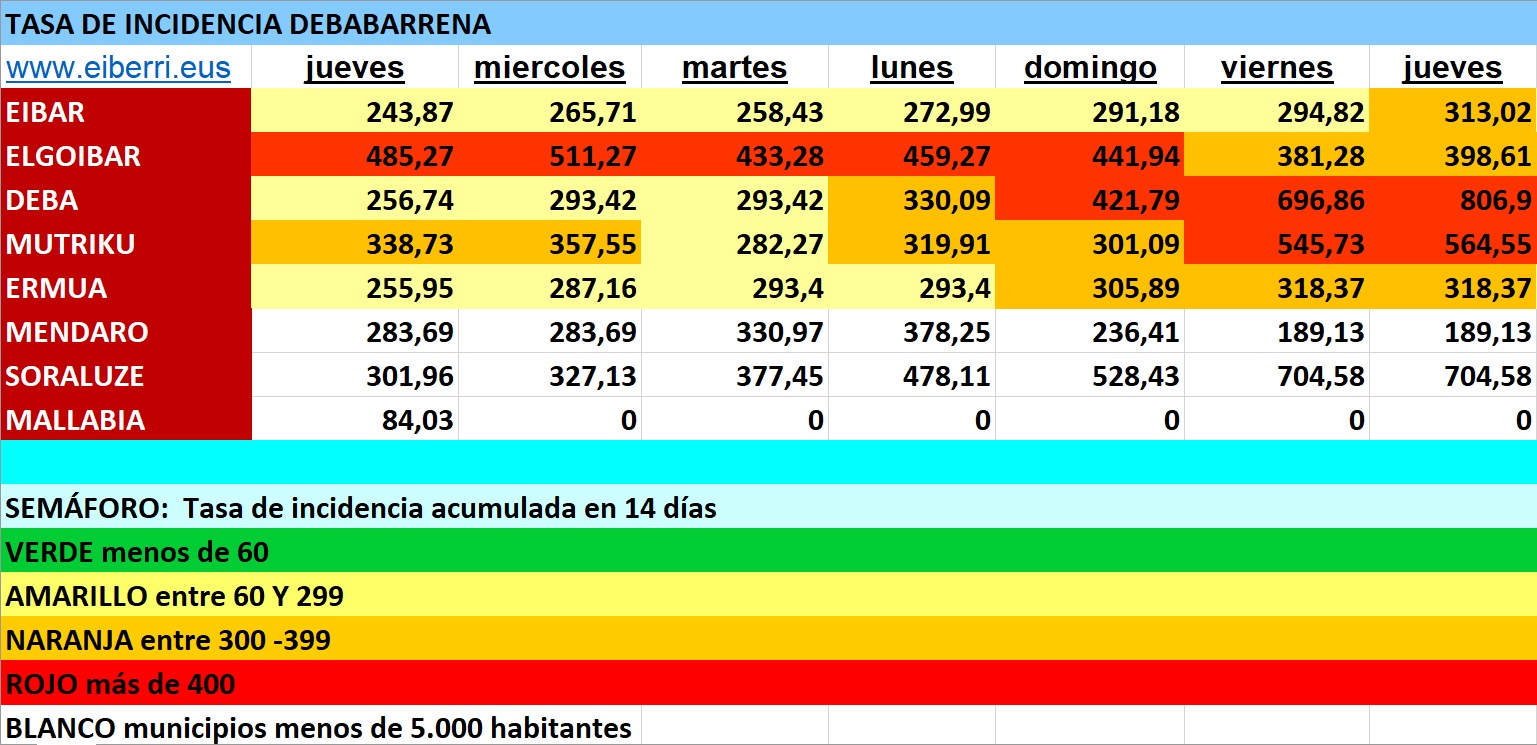 DEBABARRENA.- En la comarca de Debabarrena se detectaron ayer un total de 7 casos repartidos en Elgoibar con 3 y Eibar, Mendaro, Deba y Mallabia, que ha roto la racha de las últimas semanas, con 1 en cada.