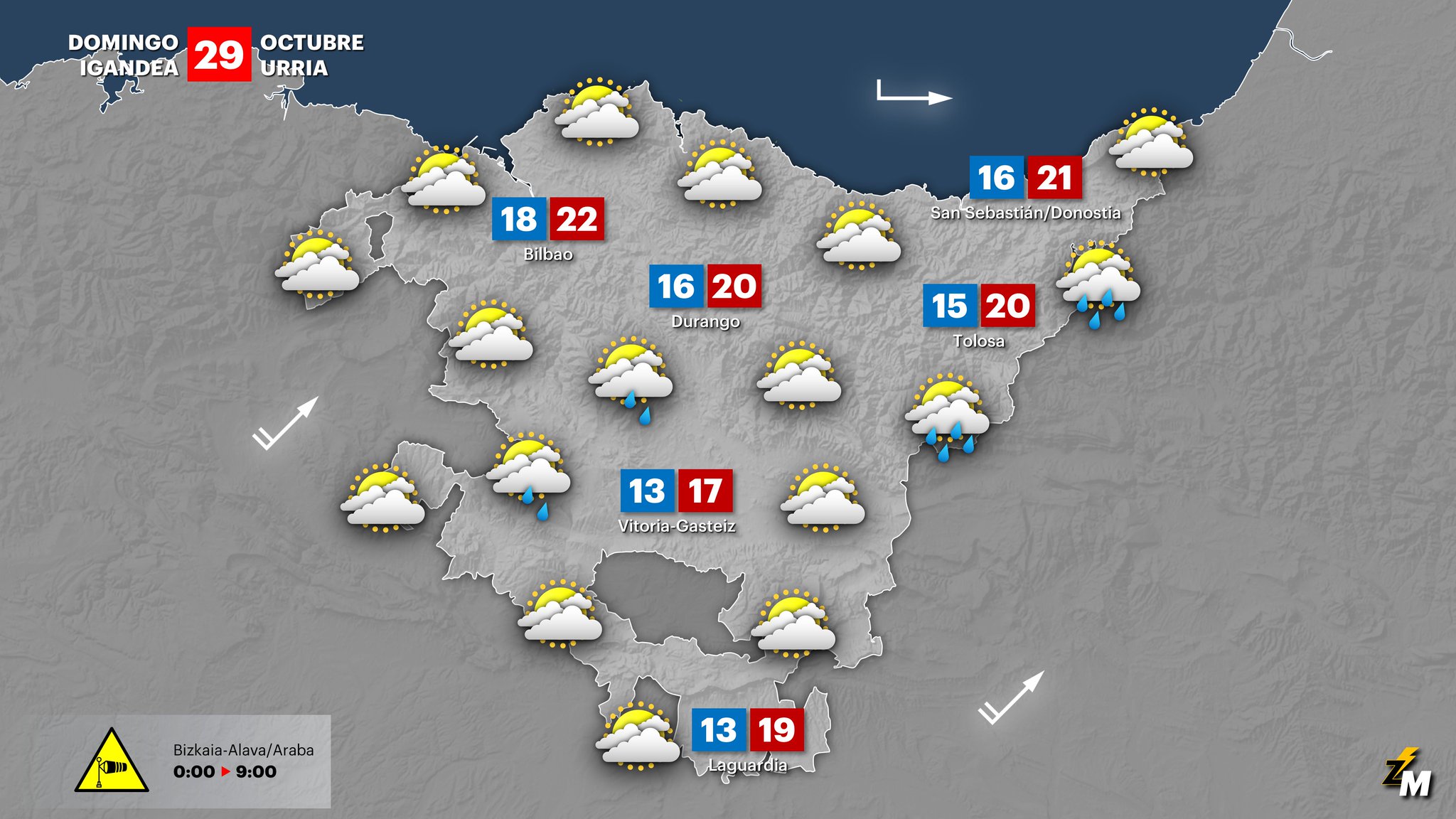 Cielos nubosos con algunos claros para hoy domingo GRAFISMO: Unai García
