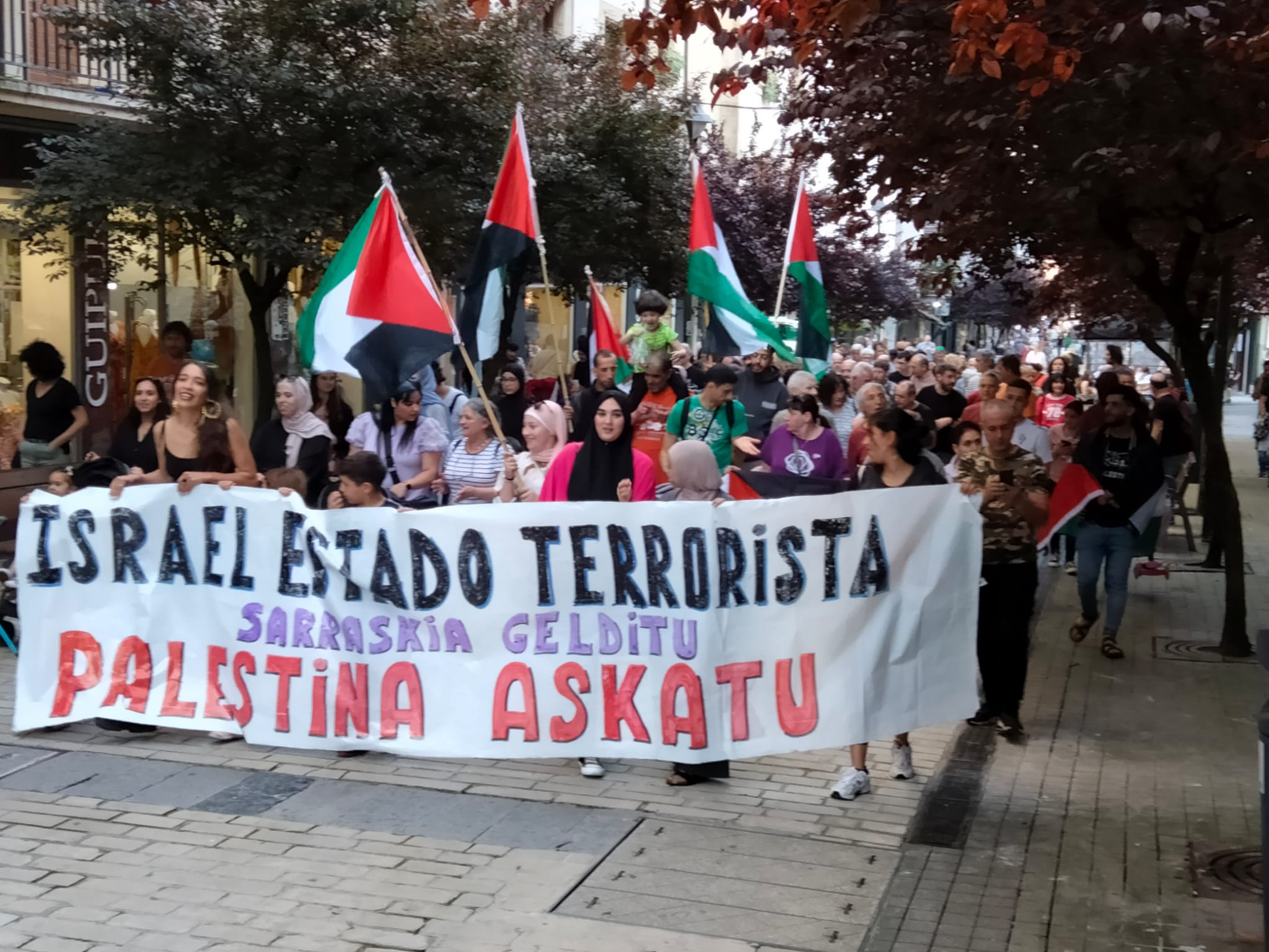 ERMUA | En torno a 200 personas se manifestaron en Ermua el pasado viernes para mostrar la solidaridad con Palestina, en la movilización convocada por la iniciativa ‘ERMUA CON PALESTINA’.