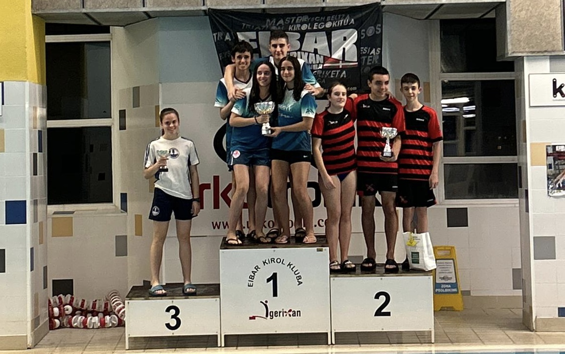En el relevo mixto de 4 x 100 estilos, el equipo formado por Paula, Asier, Igor y Miren ha logrado el primer puesto.