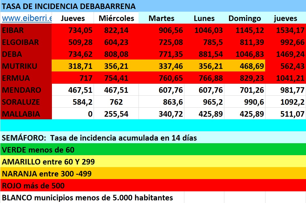 DEBABARRENA.- Al igual que ayer Debabarrena registró 30 casos nuevos de los que Eibar y Ermua son los que más casos sumaron. Eibar contabilizó ayer 12 casos, Ermua 11, Elgoibar 4, Mendaro, Deba y Mutriku 1 cada uno.