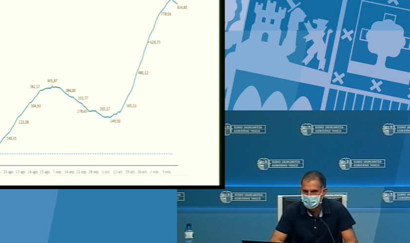 Garitano ha señalado también esta tarde que la tendencia en Euskadi es favorable, «estamos en un escenario de estabilización, los casos han disminuido en los tres territorios y empieza a decrecer, aunque la situación sigue siendo preocupante».