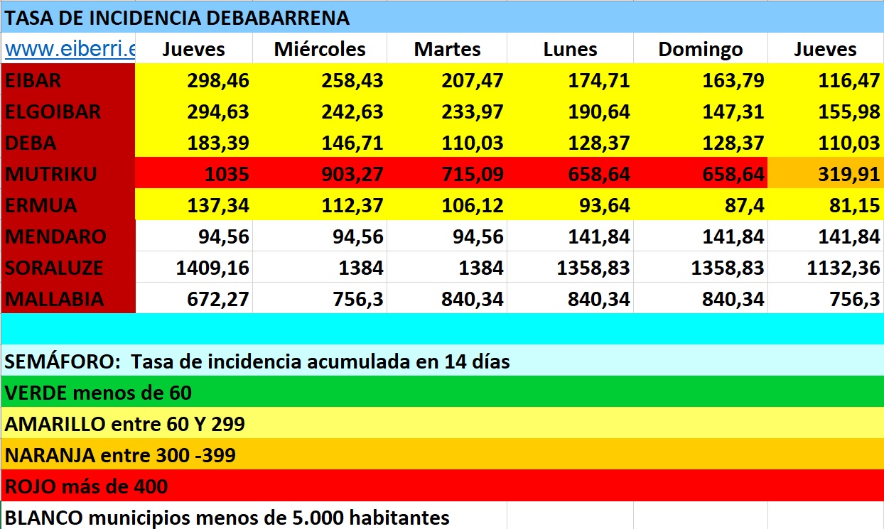 La tasa de incidencia se mantiene aunque Eibar y Elgoibar están a punto de sobrepasar los 300 a consecuencia de lo cual pasarían a la zona naranja.