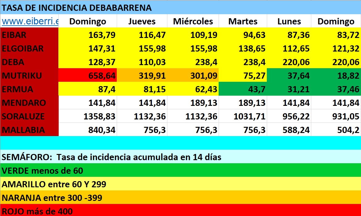 La tasa de incidencia continúa también en ascenso y Mutriku ha superado ya los 400 de tasa de incidencia con 658,64, por lo que se encuentra en la zona roja del semáforo.