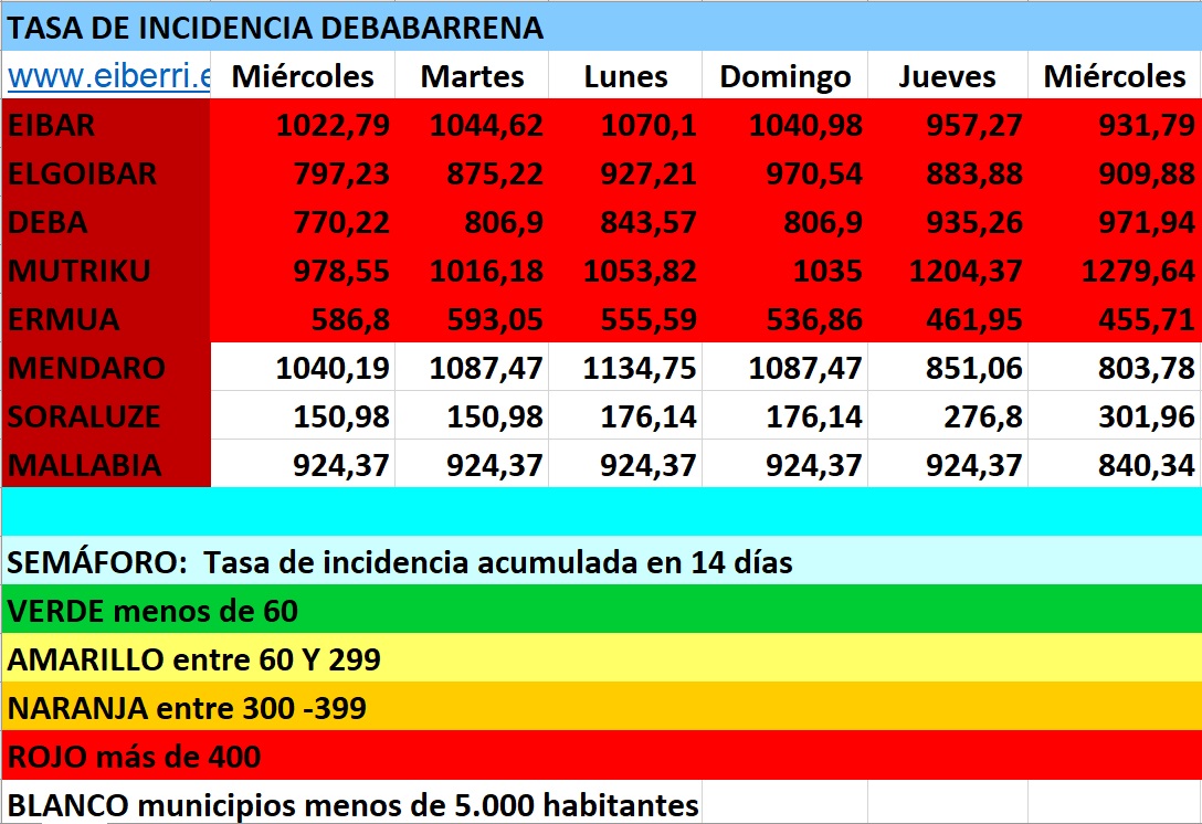 DEBABARRENA.- Eibar sigue siendo el municipio que más casos registra en los últimos días. Así, ayer fueron 12 los contabilizados en este municipio de los 21 positivos totales de Debabarrena. En el resto de municipios, Ermua y Mutriku contabilizaron 3 casos cada uno y Mallabia, Deba y Elgoibar 1.