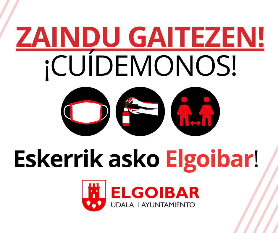 Ante ello, el Ayuntamiento de Elgoibar quiere recordar que hasta que la inmunidad de rebaños no sea completa es imprescindible ser prudente y diligente y cumplir con la normativa vigente.
