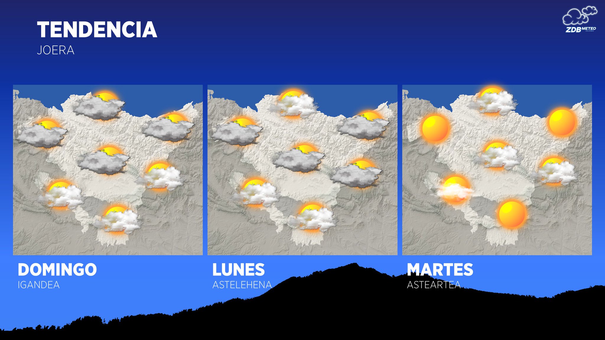 EGURALDIA.- Hoy domingo, las nubes estarán más presentes al principio y se extenderán durante la tarde. Las temperaturas irán poco a poco recuperándose y esperamos que las máximas sean un par de grados más altas que las del día anterior. El viento seguirá soplando del norte, siendo por la mañana algo molesto por momentos. En el cielo más claros en el este por la mañana, mientras que, durante la tarde, las nubes irán cubriendo los cielos y por la noche podrían darse lloviznas.