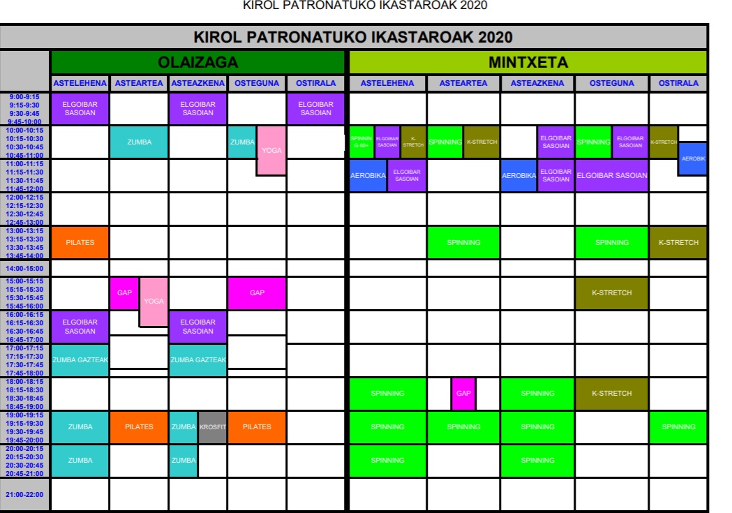 La experiencia adquirida en la reapertura en el mes de junio de las instalaciones de Mintxeta servirá de gran ayuda en la planificación de la reapertura de esta otra instalación. La segunda oleada del Covid-19 ha llevado a replantear la idea inicial de reabrir el Polideportivo Olaizaga el 1 de septiembre y adecuar a las condiciones que se exigen en esta segunda ola los servicios y actividades a ofrecer. En este sentido, el Patronato prevé reabrir el polideportivo el 14 de septiembre (si para esa fecha las obras de reforma de vestuarios de la piscina no estuvieran finalizadas, la piscina permanecería cerrada hasta la finalización de las obras).