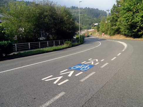 Esa vía que desde la calle Zearkale sube al polígono de Urtia, se ha reforzado con marcas viales específicas para indicar que es un tramo compartido y cada vez con mayor presencia de personas cicloturistas. En ese espacio descrito se han pintado 22 señales horizontales en la vía. La tarea la ha realizado la empresa ‘Ceprenor’ y ha tenido un coste: 5.057,80 Euros.