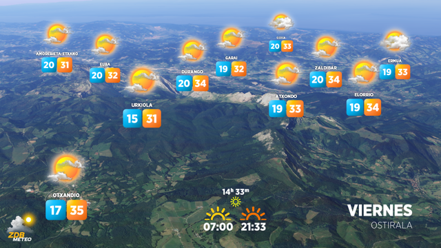 EGURALDIA.- Atrás quedarán los calurosos días, ya que tiende a refrescar. Hoy los termómetros descenderán unos diez grados, situándose el mercurio en torno a los 30 grados. Y para el fin de semana la tendencia será la misma, ya que para el sábado la máxima prevista será de 25 grados y el domingo de 23.