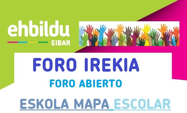 La decisión que se tomó sobre la ESO causó cierto revuelo y discrepancias en la ciudad. EH Bildu, por su parte, no quiere que vuelva a suceder lo mismo con el Mapa Escolar de los y las más pequeñas «pero también somos conocedores que mirar hacia otro lado no va a solucionar nunca las cosas y por eso, presentaremos varias propuestas en el Foro Abierto. Las propuestas, por supuesto, están totalmente abiertas a cualquier aportación» y es que EH Bildu Eibar quiere «organizar un Foro participativo sobre este sensible tema. En definitiva, abogamos por crear una dinámica positiva y participativa donde todas las opiniones y aportaciones serán respetables. Las direcciones de los centros escolares, el profesorado, las asociaciones de padres y madres, las madres y padres de Eibar y cualquier persona que tenga interés en el tema tienen las puertas del Foro abiertas de par en par».