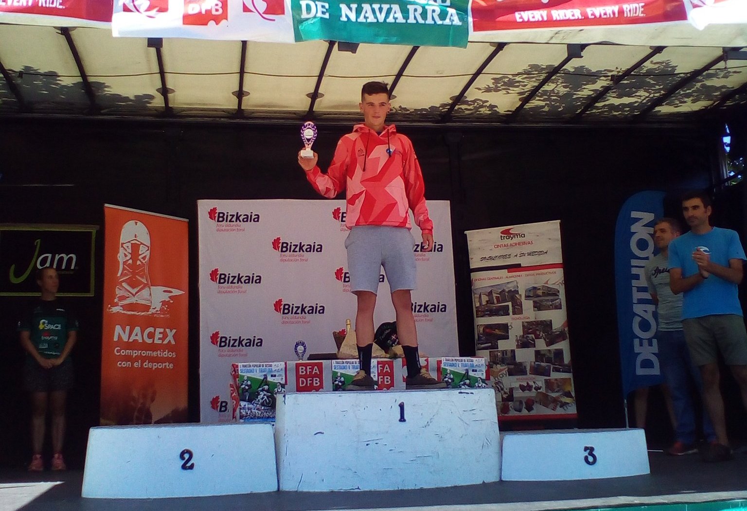EI KIROLAK.- El trialeta de Ermuko Ostots Taldea fue ganador en la categoría juvenil del V. Triatlón de Sestao disputado ayer.