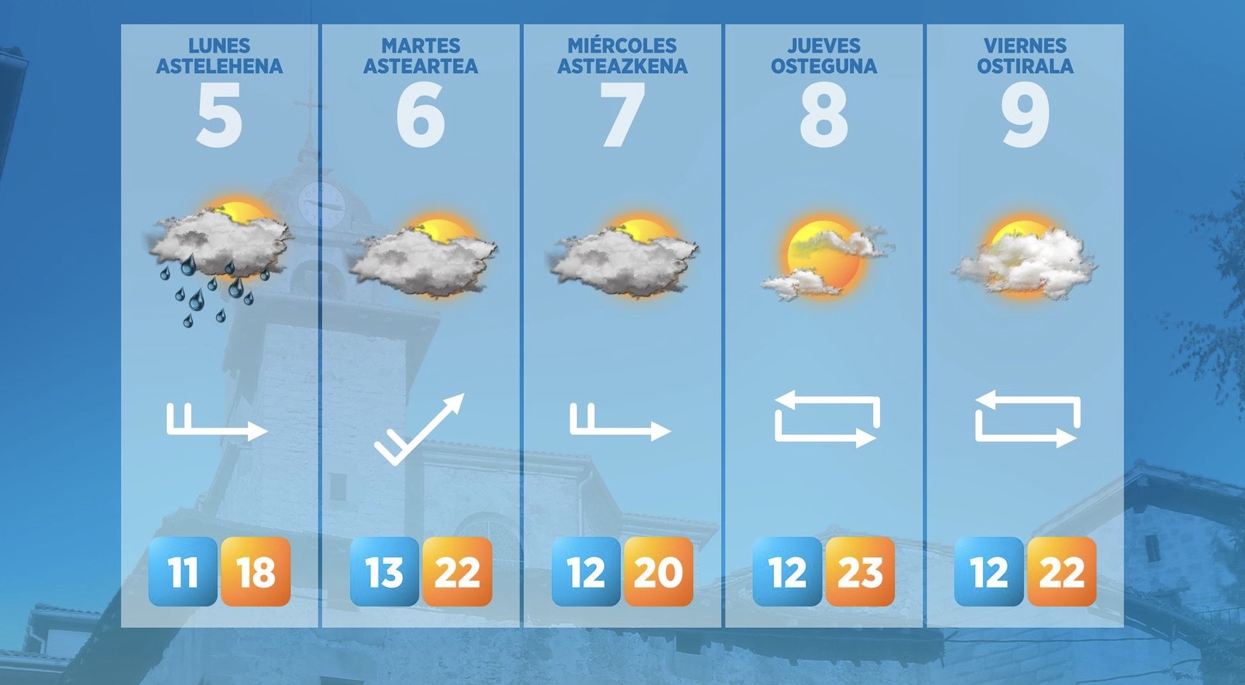 EGURALDIA.- La semana se presenta bastante gris, aunque con menos lluvia que el fin de semana. Además se abrirán claros y las temperaturas se recuperarán. De momento hoy lunes mejorará con el paso de las horas. Durante la primera mitad del día seguiremos con mucha nubosidad y algo de lluvia en la mitad norte, pero con el paso de las horas, las precipitaciones remitirán y comenzará a abrirse claros. Una tendencia que se mantendrá mañana, aunque pasará un frente que podrá dejar nubosidad y podrán caer algunas gotas. Lo más destacable será la subida de las temperaturas, ya que mañana el mercurio podría llegar hasta los 24 grados.