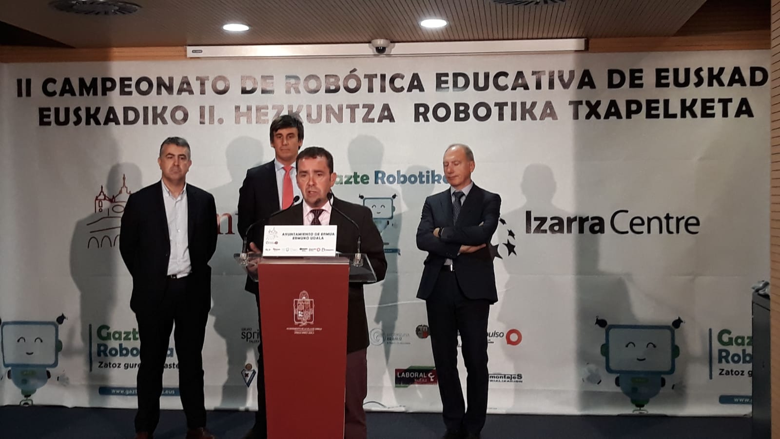 Durante el acto de presentación del certamen, que ha tenido lugar esta mañana en el edificio Izarra Centre, el alcalde de Ermua, Juan Carlos Abascal, ha destacado “el compromiso del Ayuntamiento con la celebración del Campeonato de Robótica Educativa de Euskadi en el municipio” y ha puesto de relieve “la importancia de descubrir e impulsar el talento innovador y la creatividad entre el alumnado con un proyecto como Gazte Robotika, que persigue fomentar las vocaciones técnicas desde edades muy tempranas”.