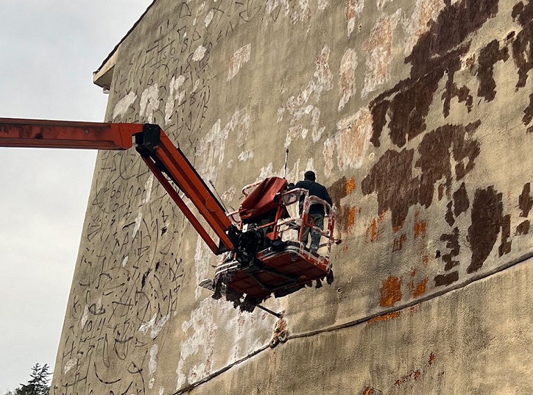 ELGOIBAR | Las y los elgoibarreses eligieron en octubre el diseño del mural que el Ayuntamiento pintará en la calle Santa Ana: el diseño ‘Ibai berria’, de Pablo Astrain. Precisamente, el artista ha comenzado hoy, 28 de noviembre, a representar el diseño en el mural: proyectará a una persona meno que salta en un pozo.