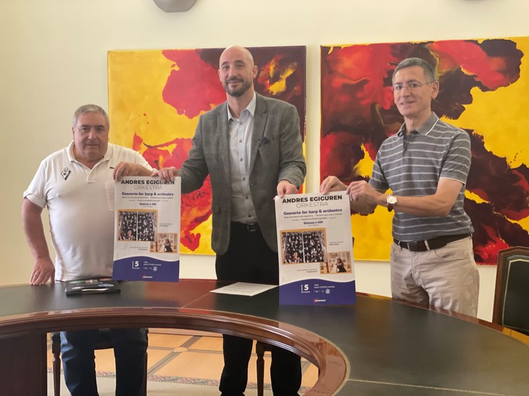 El evento ha sido presentado por el alcalde, Jon Iraola; el concejal de Cultura, Patxi Lejardi; y el director de la Orquesta, Pedro Palacín, quien dirigirá por novena vez un concierto en Eibar.