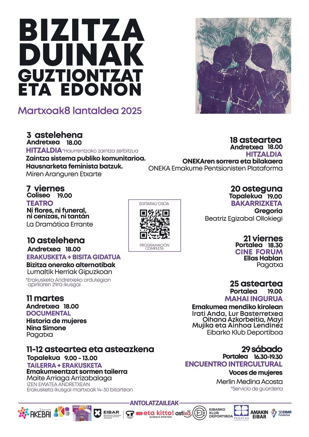 EIBAR| Anualmente el Grupo de Trabajo del 8 de marzo de Eibar acuerda un tema como eje del programa, y el de este año es, Vidas dignas.»El modelo de vida que hoy impera en nuestra sociedad promueve valores como el individualismo, la inmediatez, el consumismo y valores retrógrados que no tienen en cuenta la vulnerabilidad, dejando a un lado los valores coeducativos, la educación emocional y sexual y valores sostenibles con la vida» señalan.