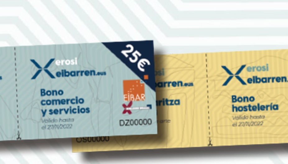 EIBAR | Los bonos para compras en establecimientos comerciales y de servicios tendrán un coste de 35 euros para realizar compras por valor de 50 euros, y los de hostelería costarán 17,50 euros y tendrán un valor de 25 euros. 180 establecimientos se han sumado a la campaña, de los que 134 son comercios y 46 bares y restaurantes.