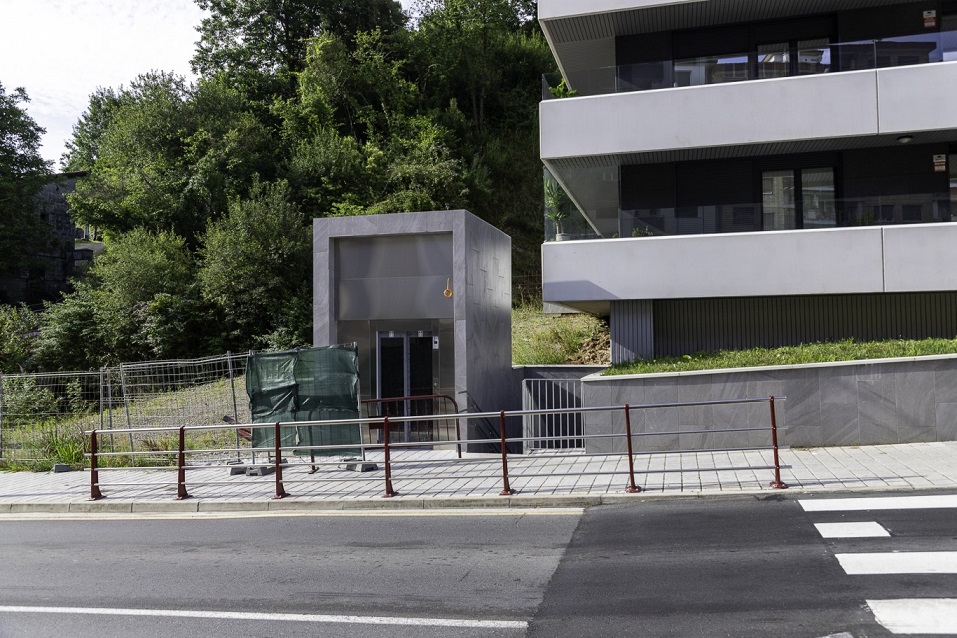 ERMUA |  Tras el derribo en pasado mes de junio del emblemático edificio ubicado en el número 17 de la Avenida Bizkaia, conocido con el nombre toponímico de ‘Larrosianekoa’, en entorno del ámbito de Lomi Power va dando pasos en su nueva urbanización. Sin duda otro de las avances importantes tendrá lugar el próximo mes de septiembre cuando entre en funcionamiento el nuevo ascensor que conecta Zeharkale y la Avenida de Bizkaia -por debajo de la carretera BI-3344-, calles que han quedado unidas bien por las escaleras y bien con el nuevo elevador, evitando así tener que atravesar la citada vía por su carretera.