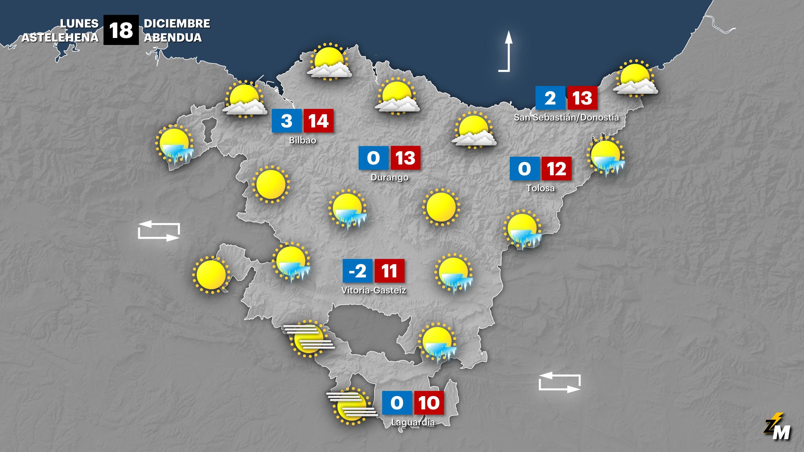 Cielos despejados con posibilidad de heladas durante el lunes GRAFISMO: Unai García