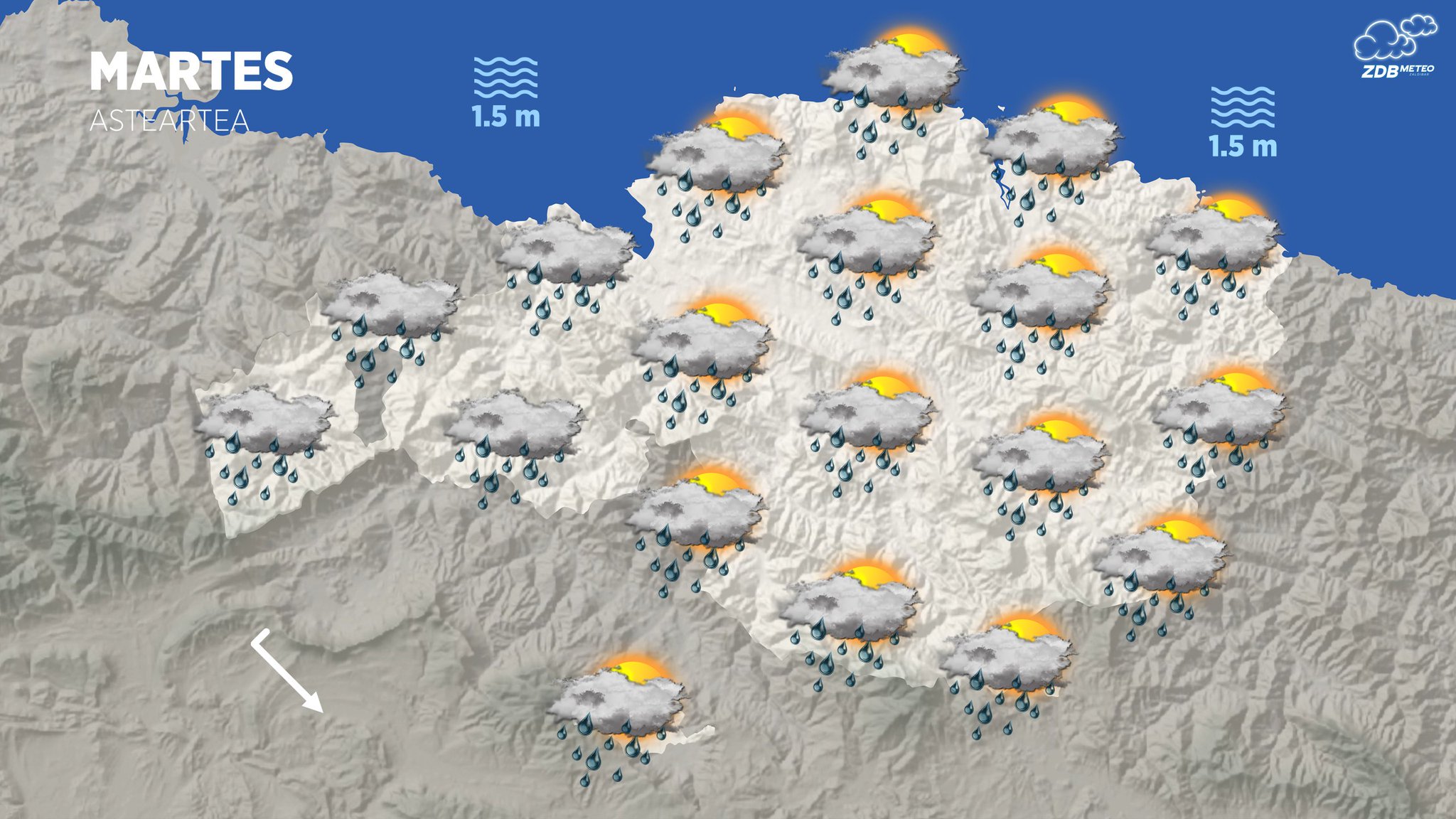 EGURALDIA.- El verano se despide con tienes otoñales, mañana miércoles a las 21:12 estrenaremos la próxima estación. Y aunque no lo parezca el martes cogerá tientes de otoño, seguirá por los mismos derroteros que el lunes con chubascos serán frecuentes Viento del oeste a primeras horas de la mañana, pasará a soplar del norte a partir del mediodía. Temperaturas sin demasiados cambios, mantendrán su aspecto otoñal.