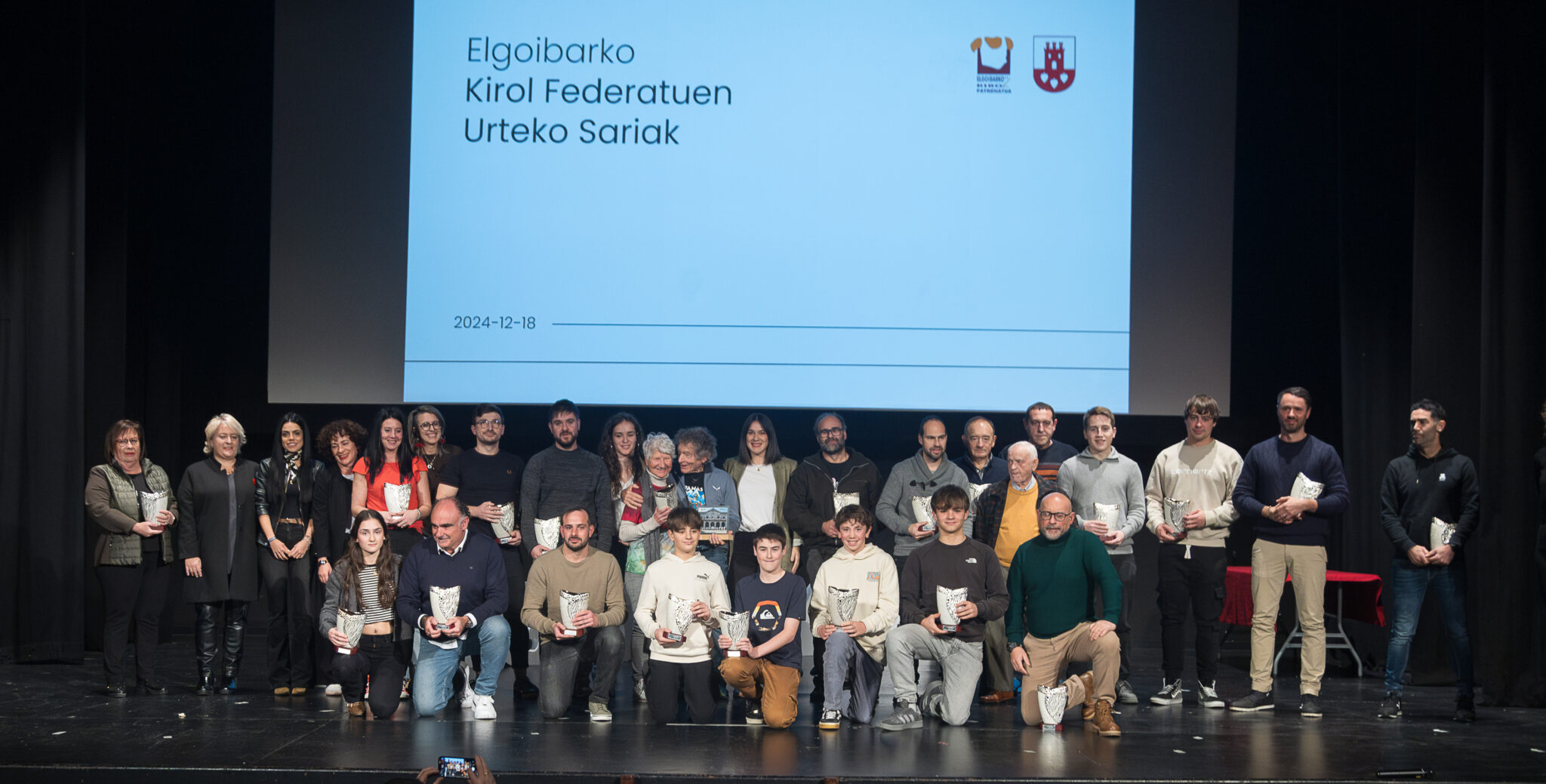ELGOIBAR | Elgoibarrek 2024ko Kirol Federatuaren Urteko Sarien Gala ospatu zuen atzo Herriko Antzokian. Bertan, tokiko kirolaririk nabarmenenak aintzatetsi ziren, beren diziplinetako dedikazio, ahalegin eta lorpenengatik. Elgoibarko Udalak eta Kiroletako Udal Patronatuak antolatutako ekitaldi honen helburua zen tokiko kirolean beren konstantziarekin eta balioekin distira egin duten kirol-klubak, banakako kirolariak eta kolektiboak omentzea.