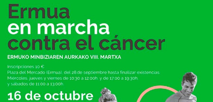 ERMUA | Las personas voluntarias de la Asociación Contra el Cáncer organizarán la VIII Marcha popular para el próximo domingo 16 de octubre, a partir de las 11 horas. La edición 2022 tendrá un máximo de 3.800 plazas y las personas interesadas podrán inscribirse desde el pasado miércoles, al precio de 10 euros por dorsal. El total del dinero recaudado se destinará a proyectos que investigan las enfermedades oncológicas.