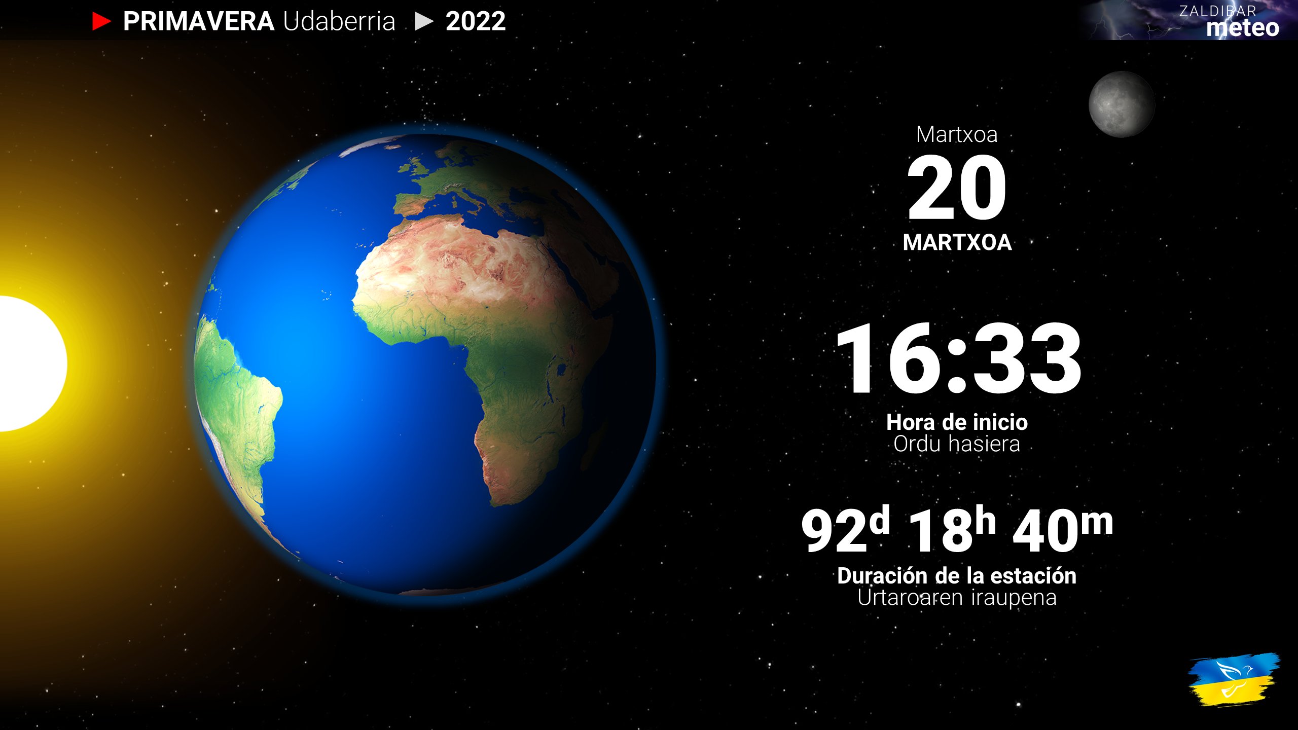 EGURALDIA | Hoy domingo entramos en primavera, será a las 16:33 horas cuando estrenemos la nueva estación que durará 92 días y 18 horas, hasta el 21 de junio. Y la entrada será con una jornada de nubes y claros con temperaturas suaves debido al viento sur con máximas de 18/19 grados.