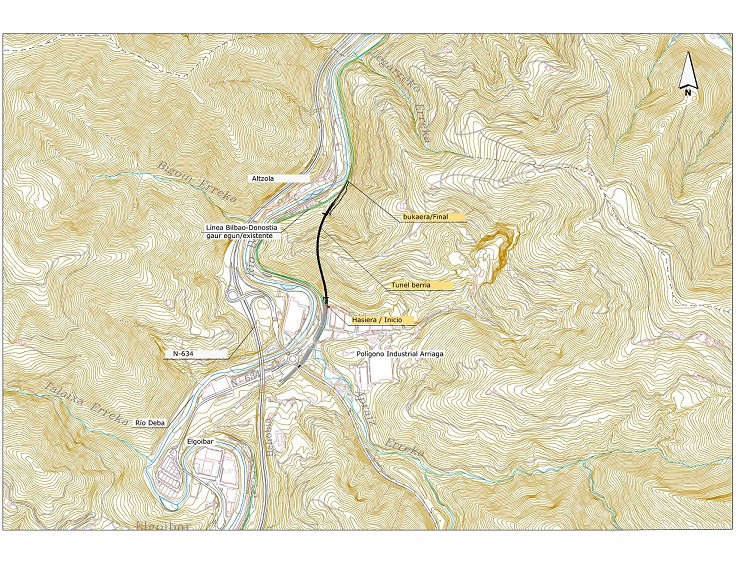 El trazado ferroviario entre el Polígono industrial Arriaga y el barrio de Altzola en la actualidad discurre de forma paralela al río Deba, que en este punto efectúa un meandro. De este modo, las obras a licitación consistirán en la construcción de un túnel con doble vía de 500 metros de longitud, de ellos 454 metros en mina y 48 en falso túnel, a la entrada y salida de los emboquilles.