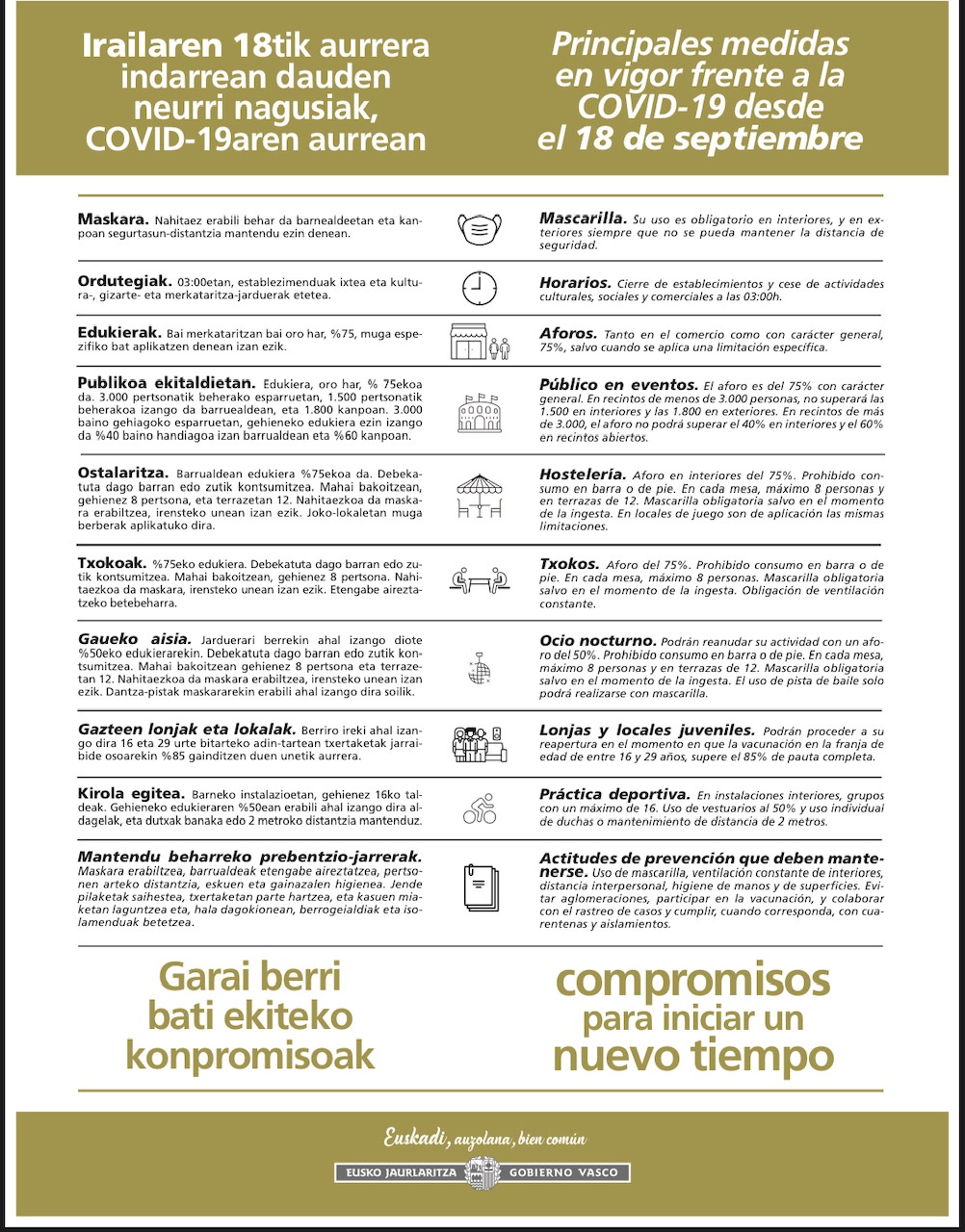 • Los establecimientos de juego y apuestas y los txokos y sociedades gastronómicas se atendrán a condiciones muy similares a las previstas para el sector hostelero.