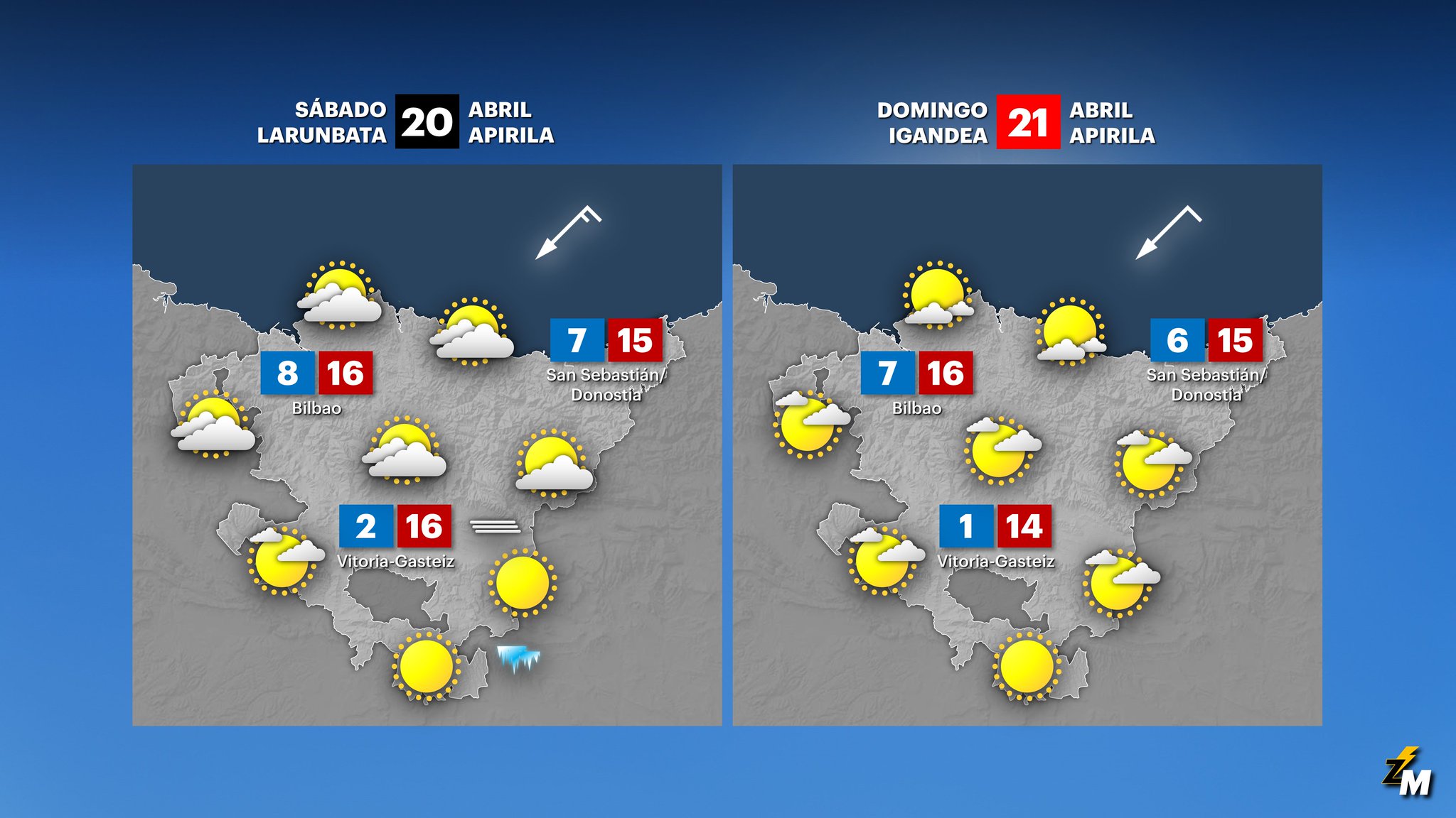 EGURALDIA | Después de una semana con tintes invernales, cielos grises y ambiente frío, llegan unas horas, hasta el lunes, de cielos pocos nubosos y temperaturas que subirán aunque se quedarán en torno a los 20 grados. Las mañanas serán frías con mínimas que rondarán los cuatro o seis grados, sin descartar alguna helada en puntos del interior.