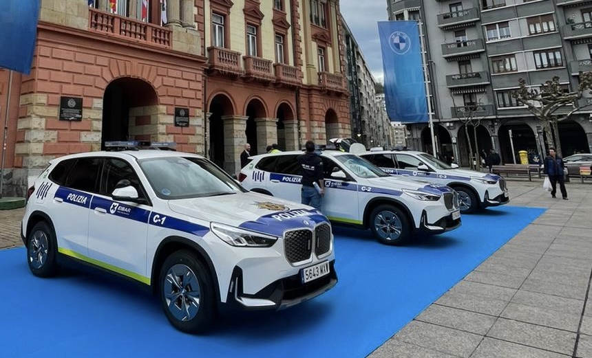 EIBAR | La Policía Municipal de Eibar ha presentado esta mañana de viernes los tres nuevos coches patrulla, de la marca BMW, 100% eléctricos. Han sido adquiridos mediante un contrato de renting para cuatro años, por valor de 192.000 euros.