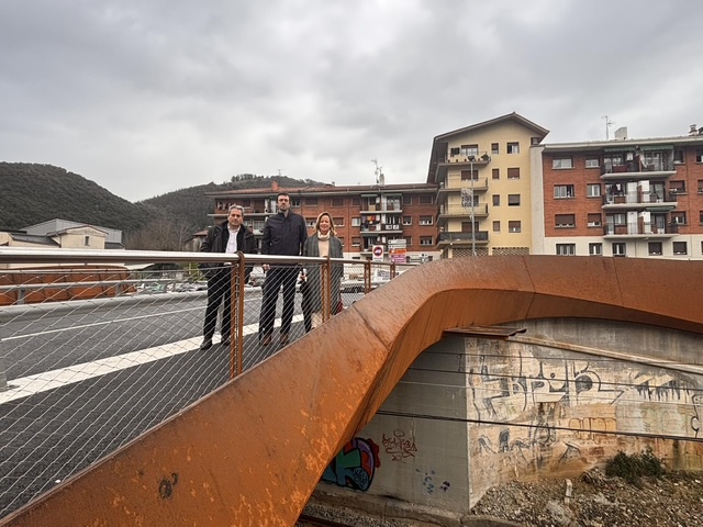 MENDARO | La diputada General de Gipuzkoa, Eider Mendoza, junto al alcalde de Mendaro, Enetz Ezenarro, ha visitado hoy el renovado puente de la GI-3821 sobre el río Deba, una infraestructura clave para el municipio que ha sido objeto de una rehabilitación integral. Los trabajos han permitido modernizar por completo su estructura mediante el refuerzo con vigas metálicas de acero corten, lo que ha aliviado la carga de trabajo sobre la construcción original. Además, se han ampliado las aceras a dos metros, mejorando notablemente la accesibilidad y la seguridad para los peatones, y se han instalado sistemas de contención homologados que cumplen con los estándares más exigentes.