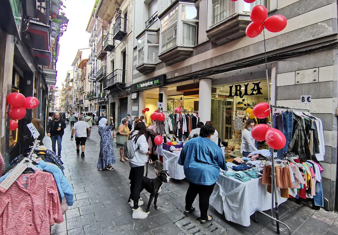 En la STOCK KALEKO AZOKA los comercios sacan sus productos a la venta delante de su propio establecimiento, ocupando la zona pintada en color rojo de la vía pública.