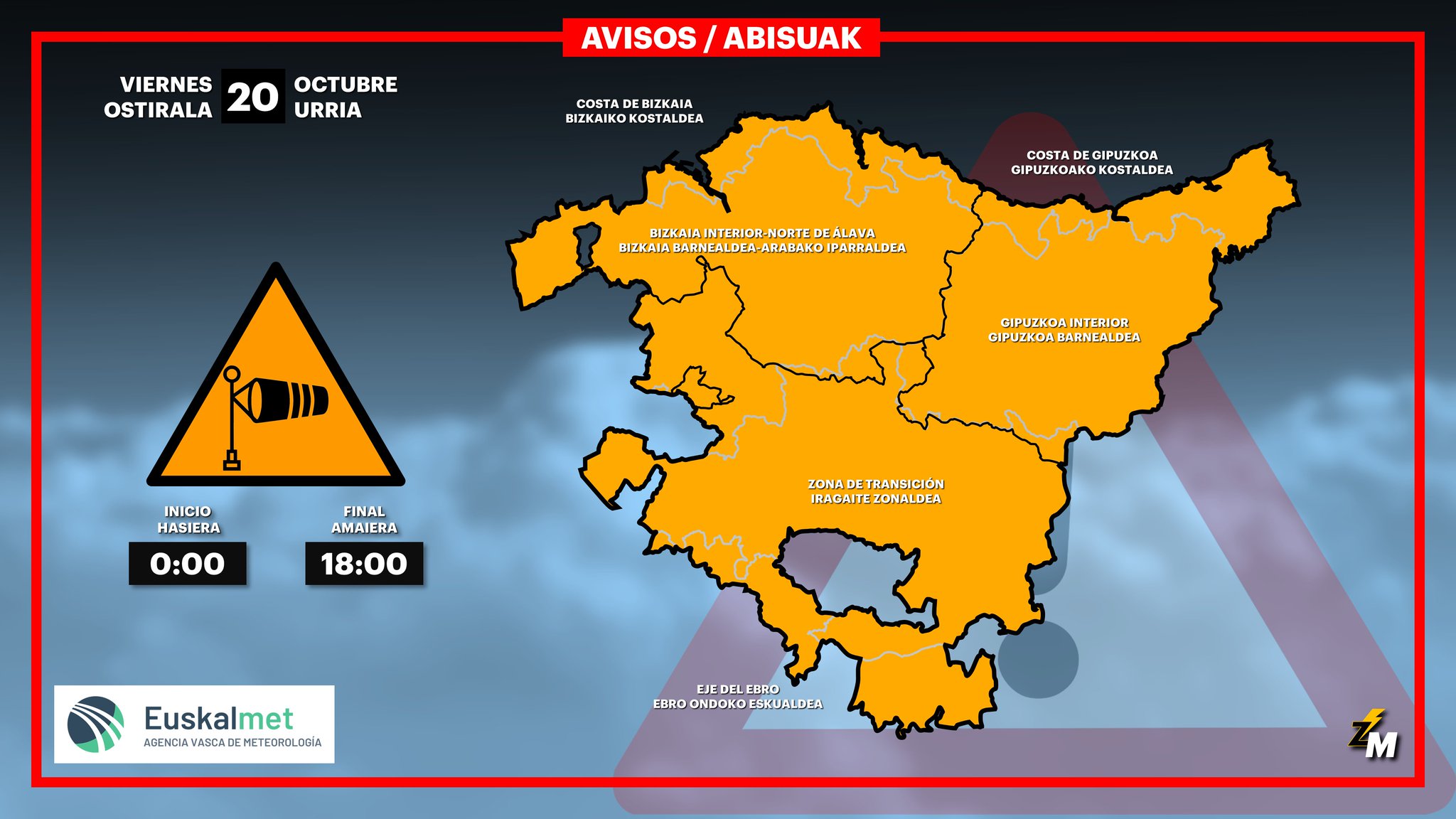 El viernes el viento será muy intenso, las precipitaciones abundantes y las temperaturas bajarán de forma notable. Durante la primera mitad del día el viento soplará del oeste-suroeste con fuerza, pero en torno al mediodía girará a oeste-noroeste y se intensificará, con rachas muy fuertes especialmente cerca del litoral. El giro de viento provocará un aumento de la nubosidad y la llegada de chaparrones localmente intensos y abundantes, que se darán sobre todo en puntos cercanos al litoral y en el este. Las temperaturas rondarán en las horas centrales del día los 15-18 ºC. Por la noche el viento volverá a soplar del suroeste pero perderá algo de intensidad. Las mínimas se registrarán al final del día.