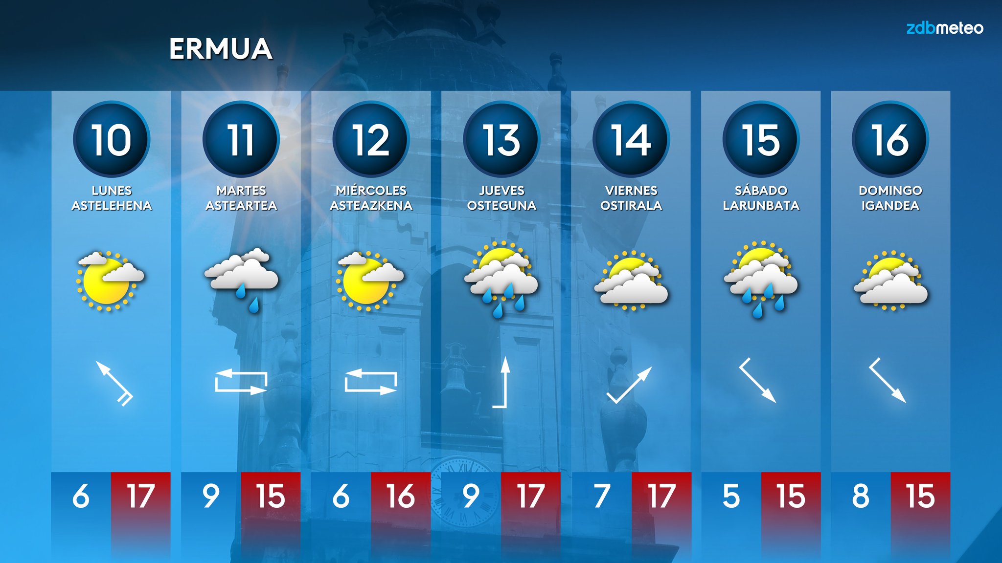 EGURALDIA | Esta semana será más inestable que la anterior. El tiempo estará más revuelto con nubisdad, algunas lluvias, posibilidad de tormentas que se alternarán con ratos de sol. De momento seguirán las temperaturas suaves, en torno a los