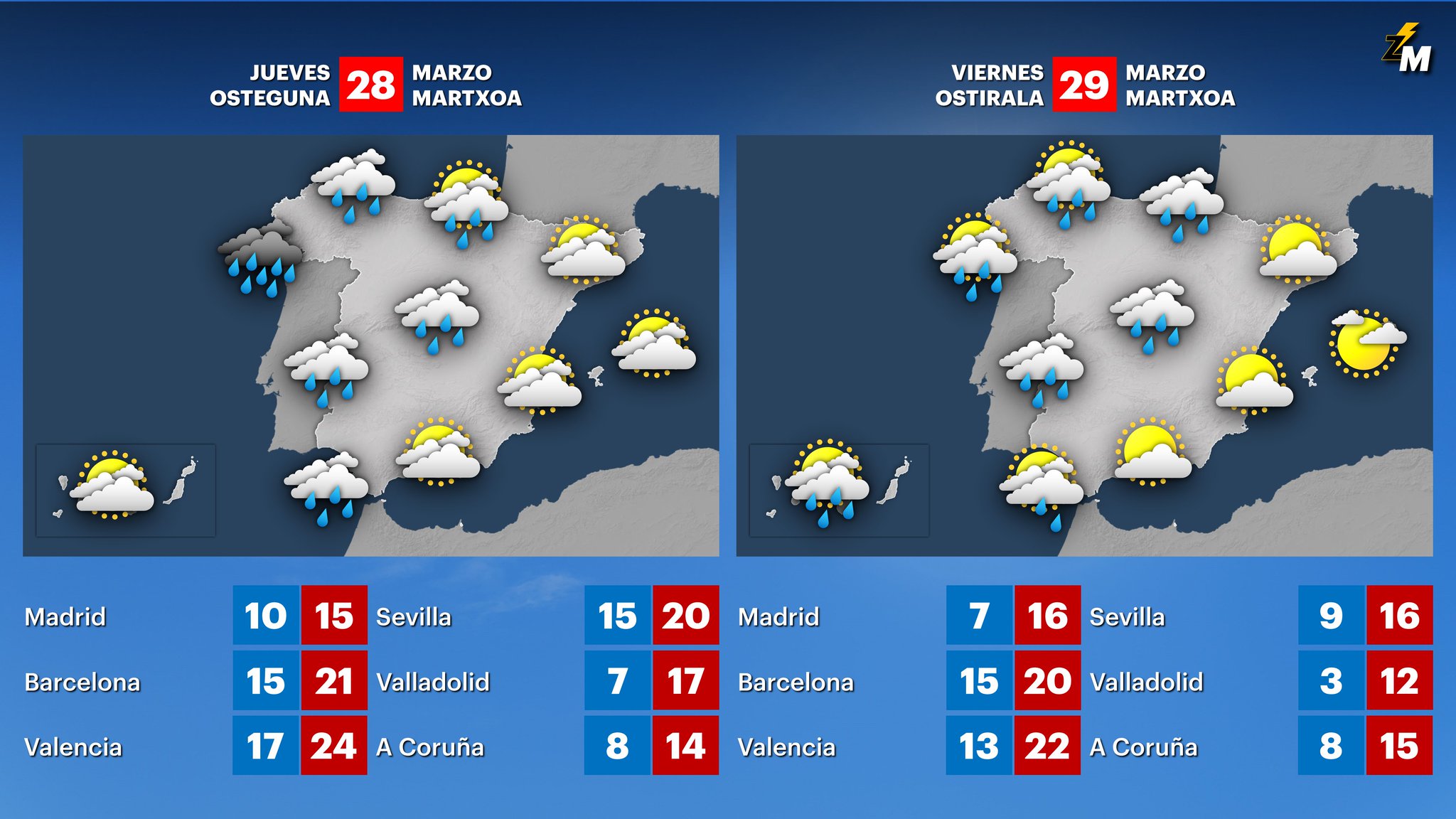 Tiempo previsto para el Jueves y Viernes Santo GRAFISMO: Unai García