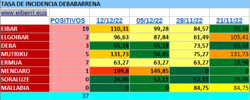 DEBABARRENA | La situación parece que empeora ligeramente en la comarca con respecto a la semana anterior. Así Mendaro entra en la zona roja y Eibar y Mutriku en la naranja según los datos publicados hoy por Osakidetza.