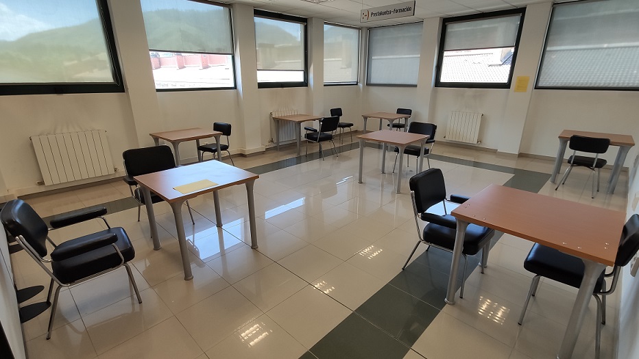 10 pertsonarentzako bakarka ikasteko aukera eskaintzen du eta mahai bakoitzak ordenagailu-karga puntua eta wifi konexioa dauzka