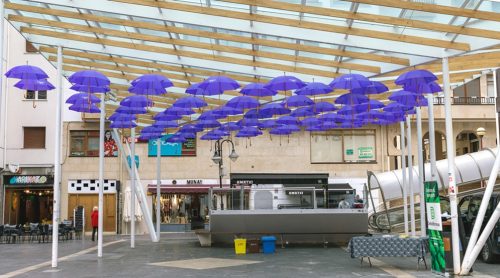 ERMUA | Con varias charlas, la última este miércoles, comenzaba la programación del 25N en la localidad. Unos actos que continuarán hoy con una vivencia teatral y además este año como novedad se han colocado paraguas de color morado en la plaza Cardenal Orbe, por representar «un elemento de resguardo y protección». Es la acción más visual, junto con el reparto de carteles con punto morado y de 70 mil servilletas con el mensaje ‘Tu papel es clave, no seas cómplice’ en la hostelería. También, habrá las siguientes actividades: