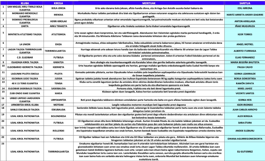 Este evento tiene como objetivo reconocer la labor que las Asociaciones Deportivas realizan en el municipio de forma voluntaria. Elgoibar cuenta con 20 clubes deportivos en los que están federadas unas 1500 personas. Las asociaciones deportivas ofrecen al municipio cohesión comunitaria, fomento de actividades saludables, promoción de valores, etc. Por ello, el Ayuntamiento quiere ofrecer su reconocimiento a todas las asociaciones deportivas de la localidad.