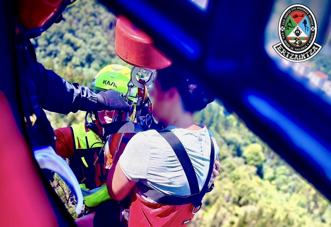 EIBAR | La Ertzaintza recataba este miércoles en a una mujer herida en una pierna en el entorno Galdaramiño. Ha sido necesaria el helicóptero para la evacuación de la montañera debido al difícil acceso y posteriormente ha sido evacuada al hospital de #Mendaro.